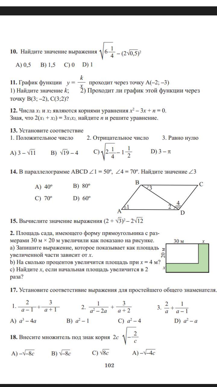 14. тк в параллелограмме противоположные углы равны, то угол 1= углу 5=50° , угол 3= 180°- угол 4 - угол 5 = 180°-70°-50°=60°