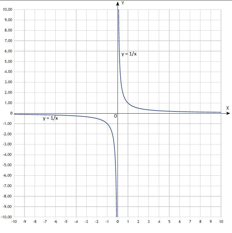 График - гипербола у = 1/х, смещённая вправо по оси Ох на 2 единицы.