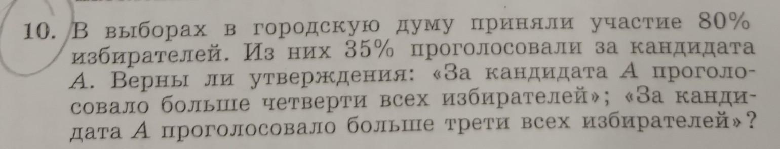 80:4=20%-одна четверть => За кандидата А проголосовало больше четверти всех избирателей