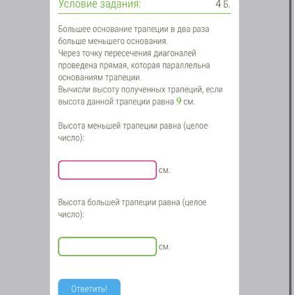 Через О, точку пересечения диагоналей, проведем перпендикуляр к основания КМ. К∈ВС, М∈АД.