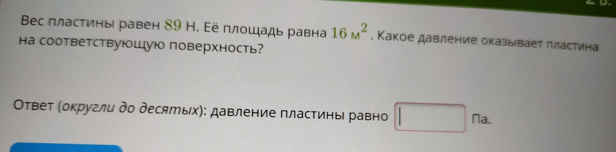 P = 89:16 = 5,56Н/м^2 = 5.6 Па (Паскаль)