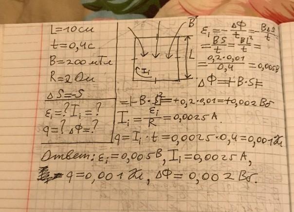 3. Квадратную проволочную рамку со стороной 10 см, расположенную перпендикулярно линиям индукции магнитного поля с напряженностью 20 А/м, взяли за два расположенных по диагонали угла и растянули за 1 с так, что площадь рамки стала равна нулю. Определить ЭДС индукции, возникающую в рамке во время ее деформации.(и = 25 нВ)
