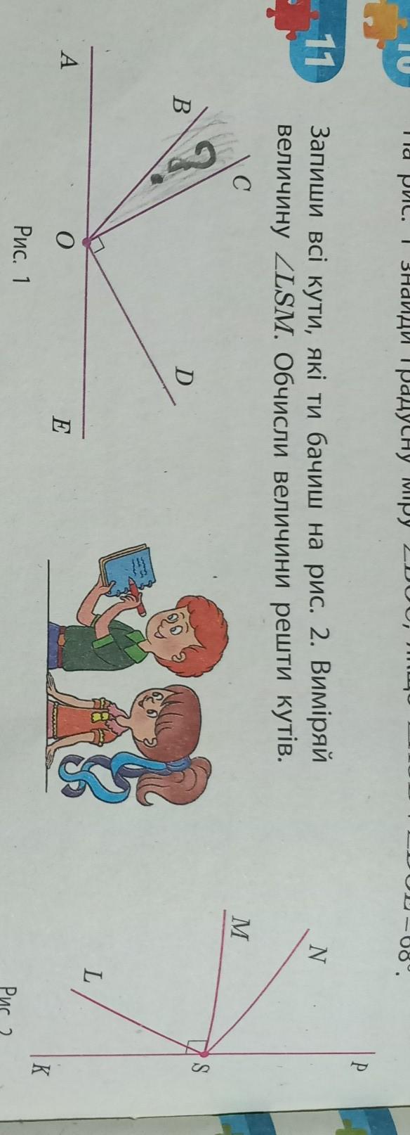 Запиши всі кути, які ти бачиш на рис. 2. Виміряй величину /LSM. Обчисли величини решти кутів.