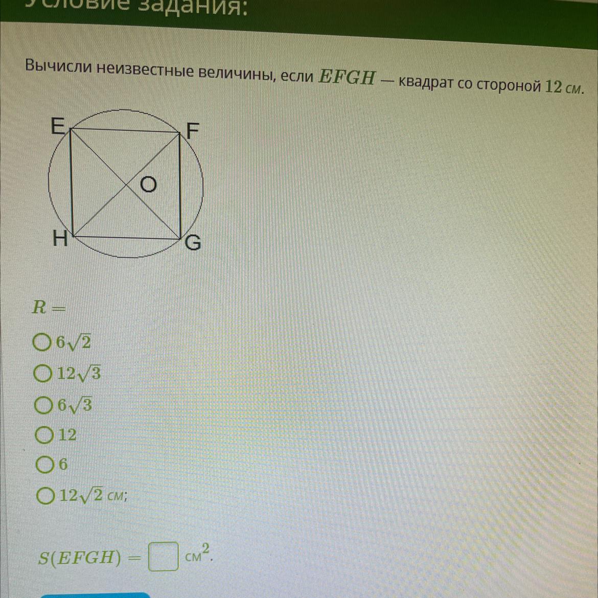 R=EG/2=12√2/2=6√2
