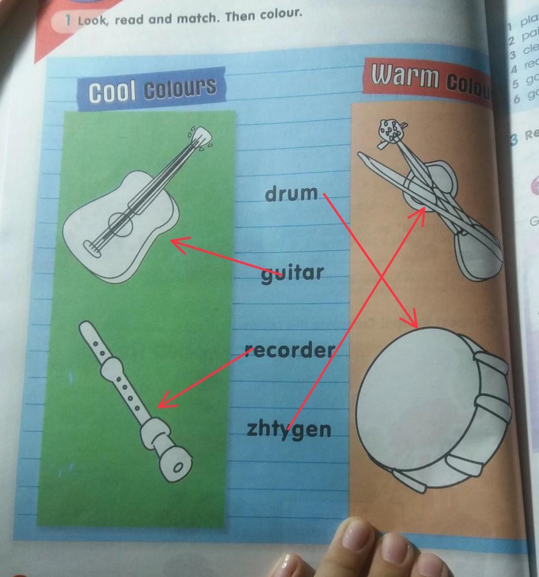 Объяснение: Тут нужно сопоставить музыкальный инструмент с его названием на Английском языке.