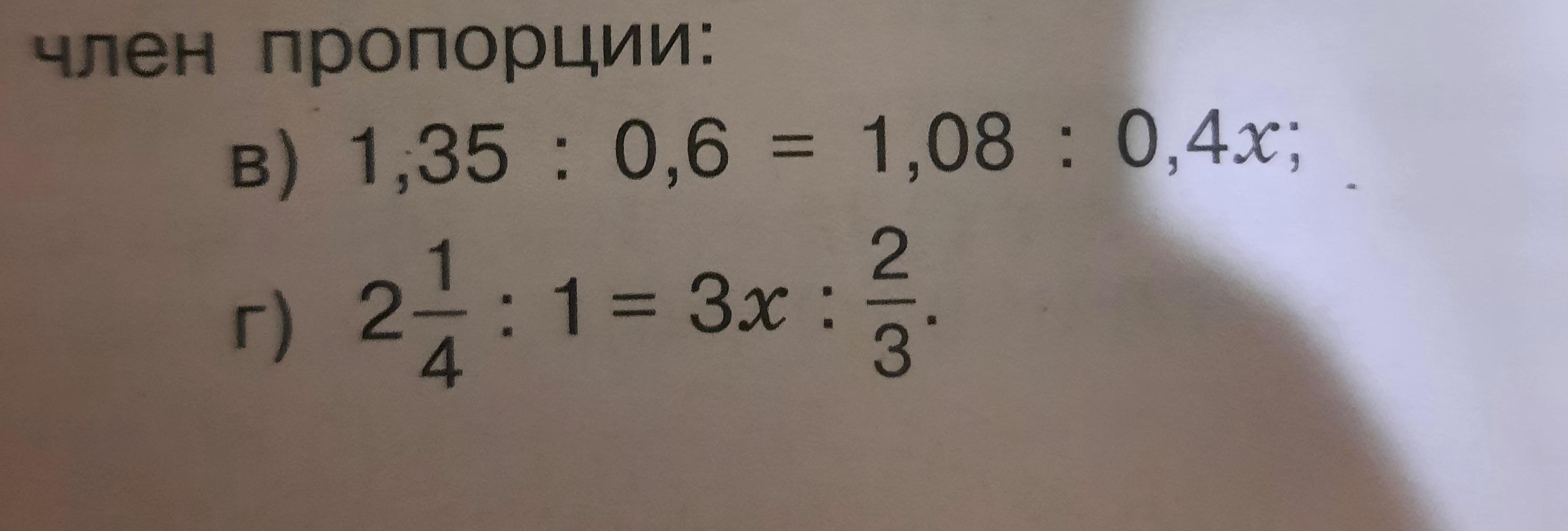 в) 1,35 : 0,6 = 1,08 : 0,4х