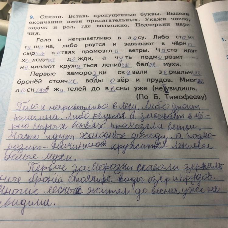 9. Спиши. Вставь пропущенные буквы. Выдели