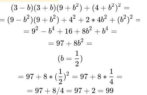 (3-b)(3+b)(9+b^2)+(4+b^2)^2 при б= 1/2 (дробь)