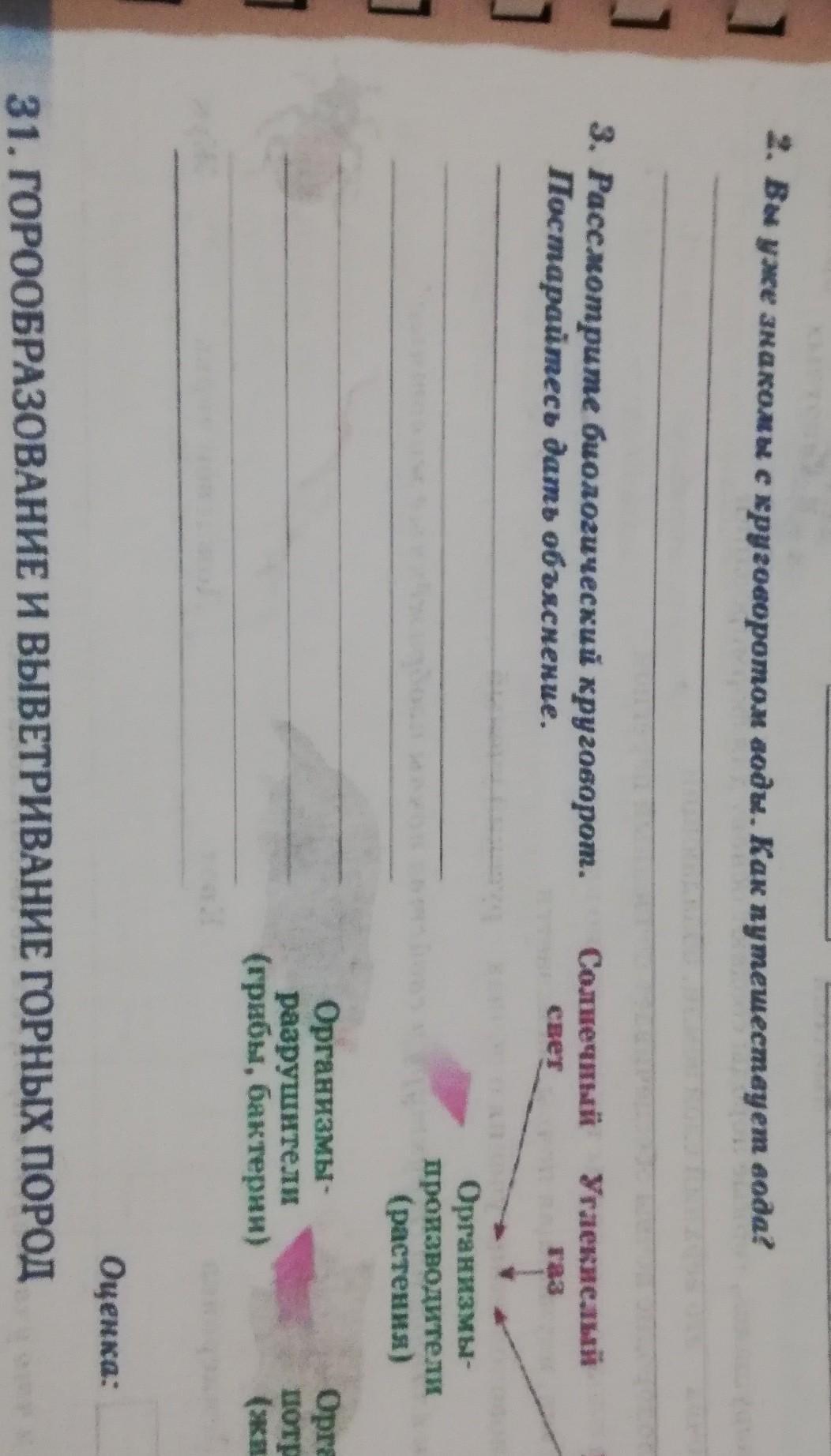Вода появляется потом испаряется и капает обратно на землю в виде дождя и поподая в землю она поподаетобратно в воду