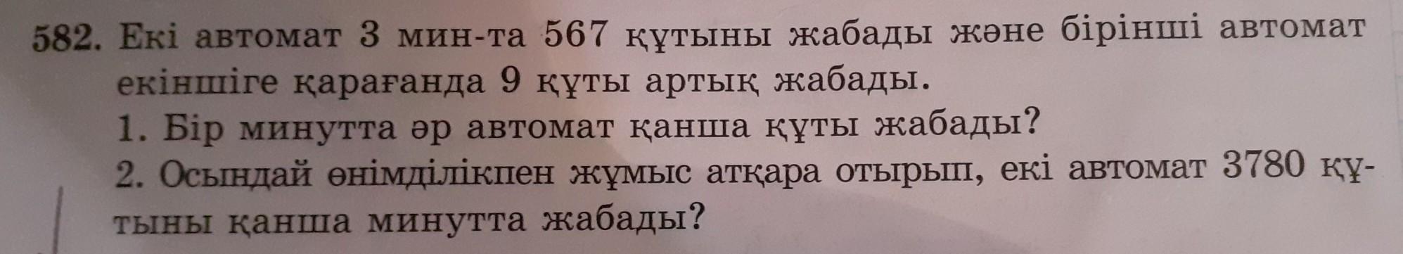 1)1автомат286кутты жабады 2автомат 279автомат орындадуы (567-9):2=279