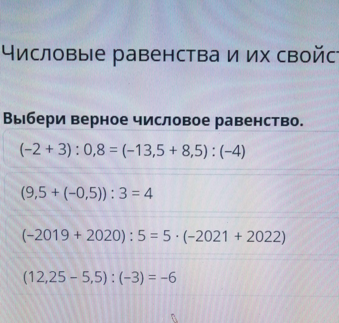 (-2+3):0,8=(-13,5+8,5):(-4)-верное