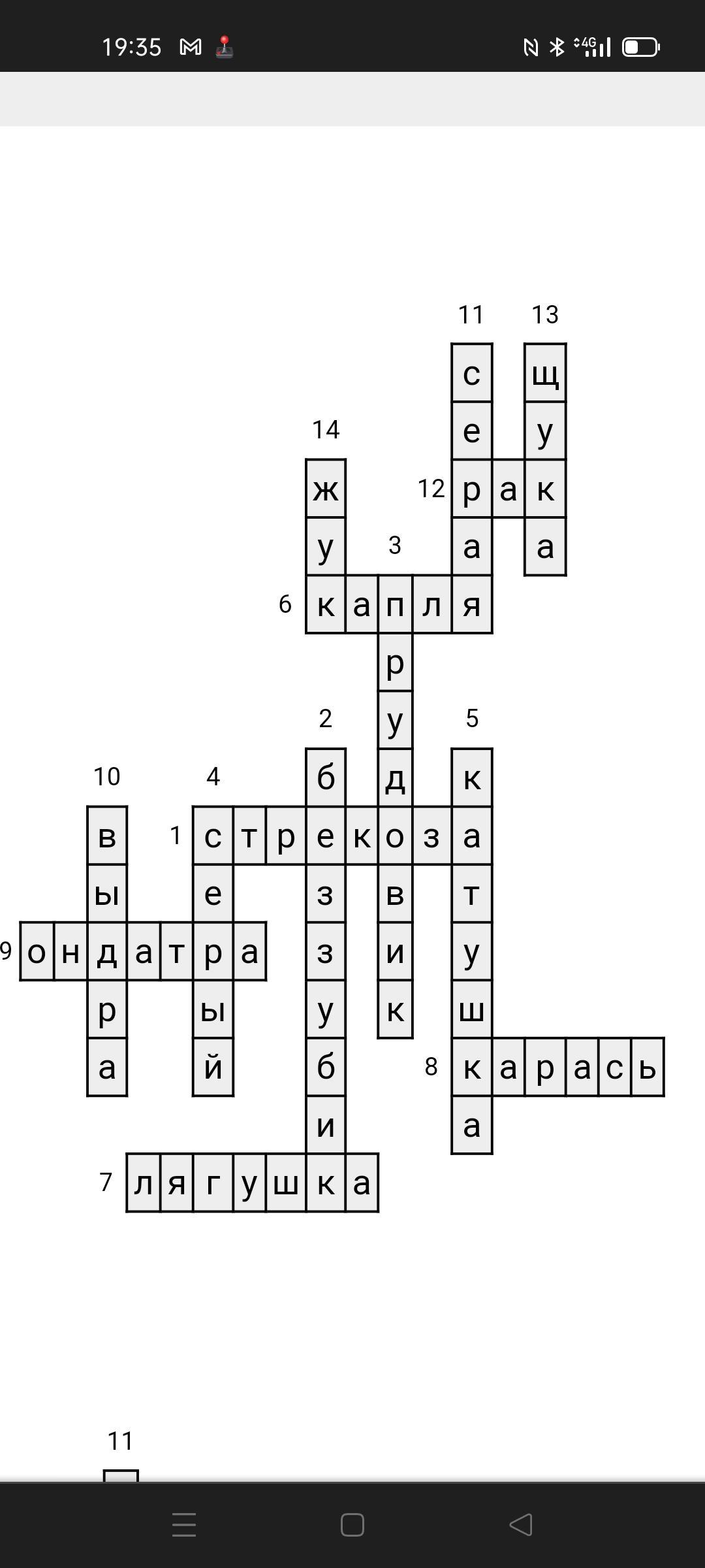 кроссворд на тему „обитатели водоёмов”15 слов слова: 1-утка-кряква, 2-серая капля, 3-серый жук, 4-беззубик, 5-рак, 6-карась, 7-лягушка, 8-щука, 9-жук-водолюб, 10-катушка, 11-ондатра, 12-стрекоза, 13-прудовик, 14-выдра с вопросами