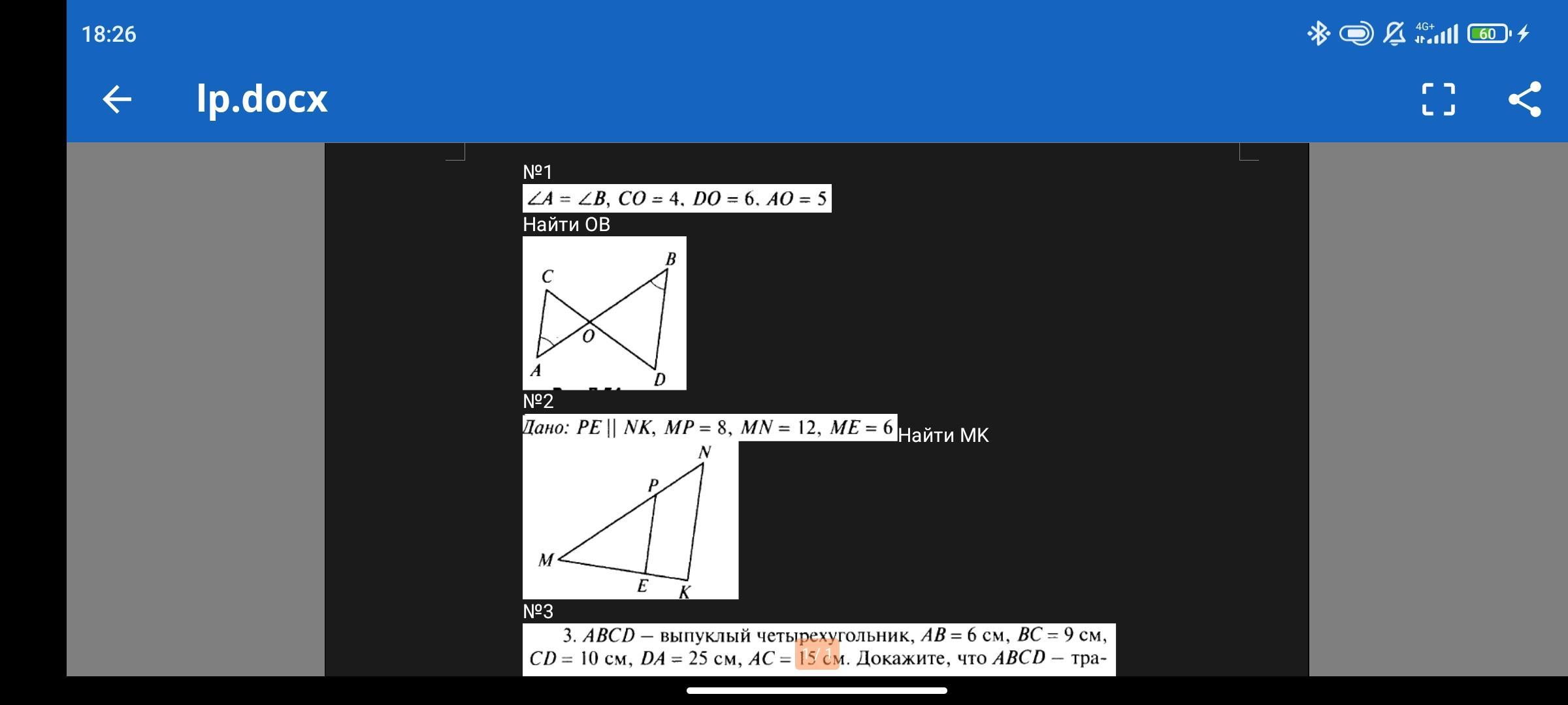 2) ΔМРЕ~ΔМNK по 2-м углам : ∠М-общий, ∠МРЕ=∠МNК как соответственные при РЕ|| NR , MN-секущая ⇒ сходственные стороны пропорциональны.