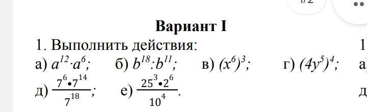 а у тебя там под буквой е) где дробь написано 5⁶×2⁶/5×2 где 5×2 там какая степень у тебя ,просто не видно