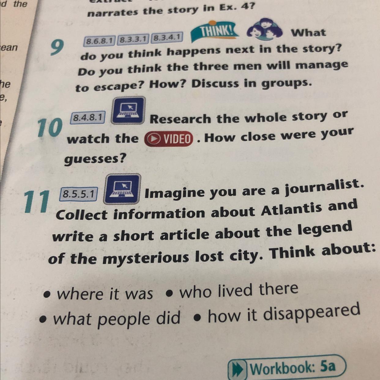 11 упражнение. Imagine you are a journalist. Collect information about Atlantis and write a short (8-10 sentences) article about the legend of the mysterious lost city. Think about: where it was? Who lived there? What people did? How it disappeared?