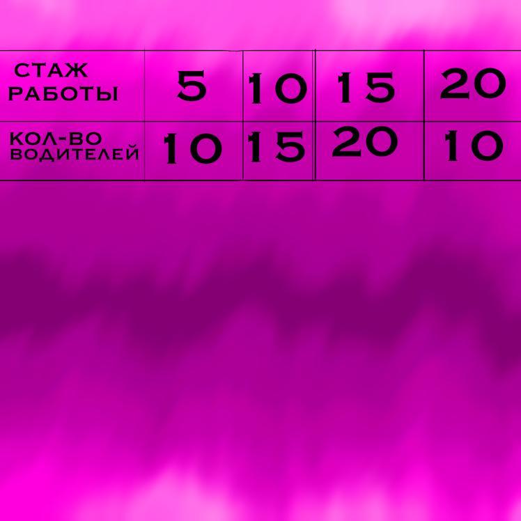 2) 5+10+15+20=50 - общий стаж всех водителей