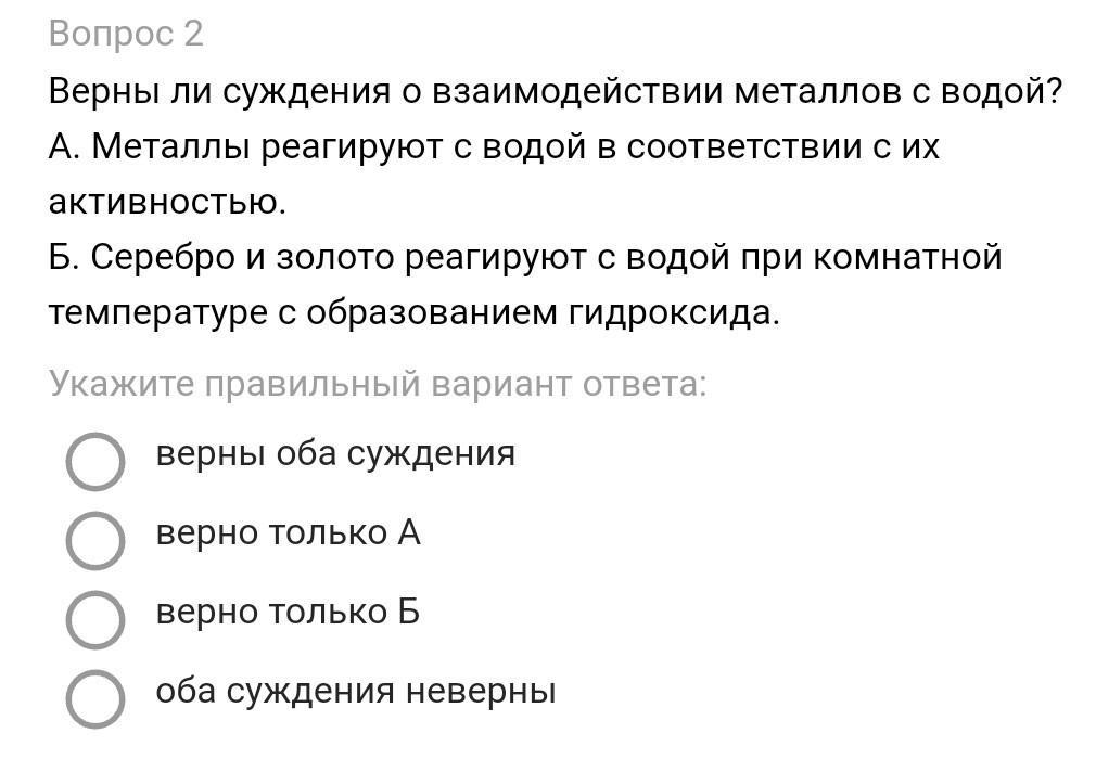 Б. Серебро и золото реагируют с водой при комнатной температуре с образованием гидроксида