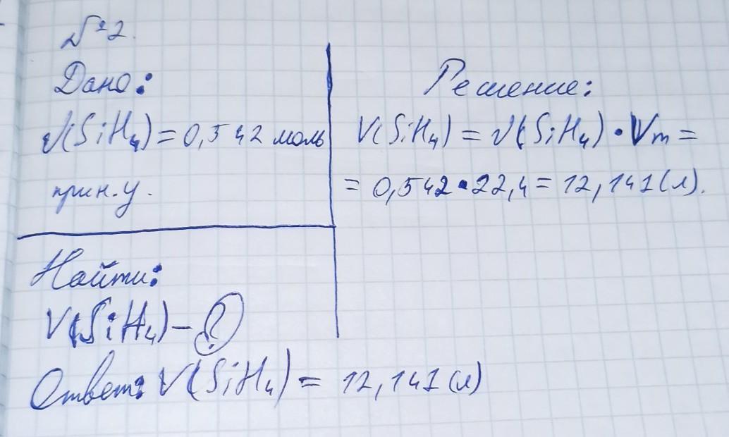 Какой объем при н.у. занимают 0,542 моль силана SiH4?