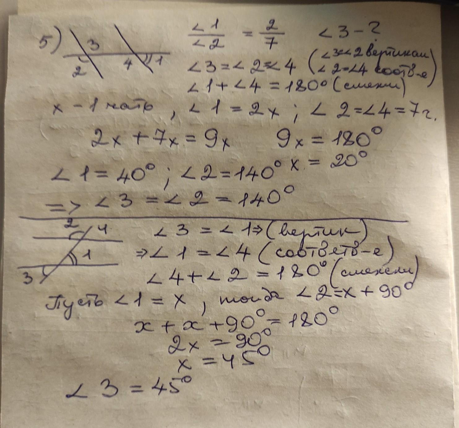 Значит угол 3 =7 частей, а угол4=2 части7х+2х=180°