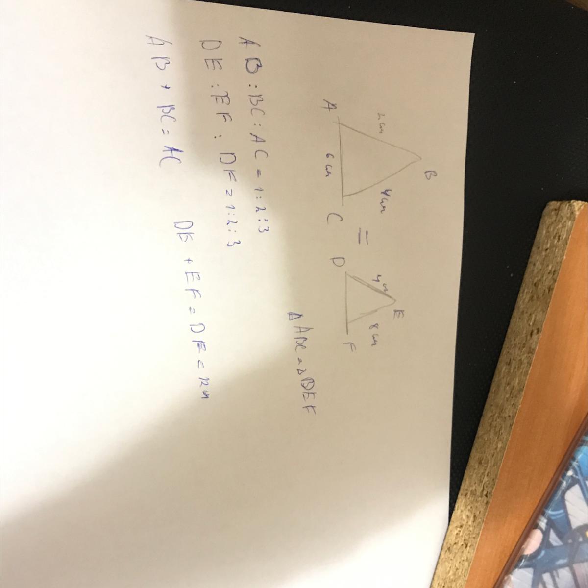 Пусть треугольник ВАС подобен треугольнику EFD. Стороны АВ= 2 см, ВС =4 см, АС=6 см, DE = 4 см, ЕF = 8 см.