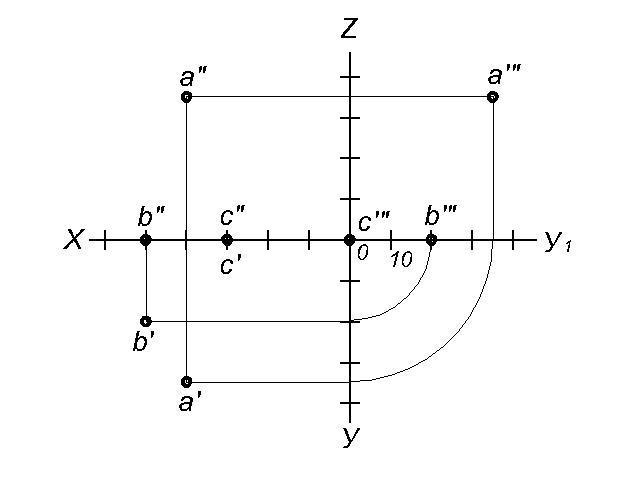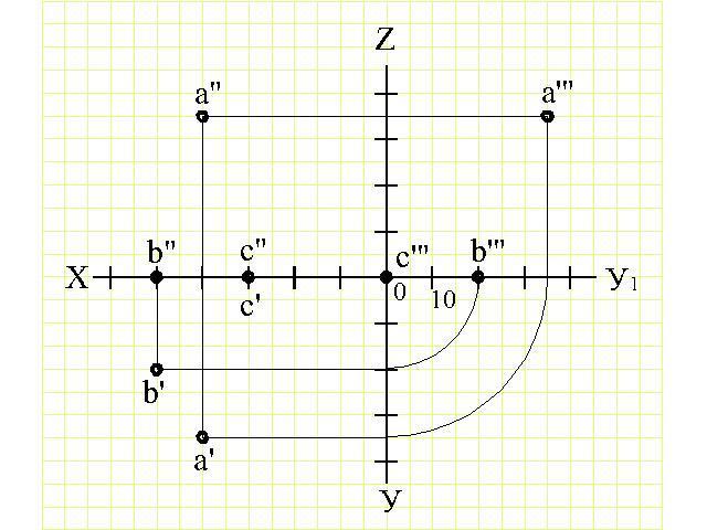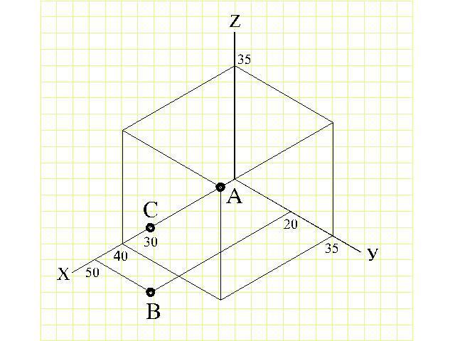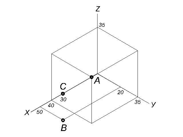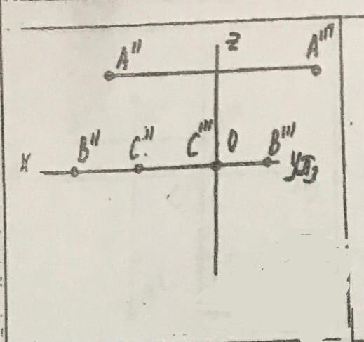 По двум заданным проекциям трех точек а в и с построить их 3 проекцию.Построить наглядное изоображение точек.