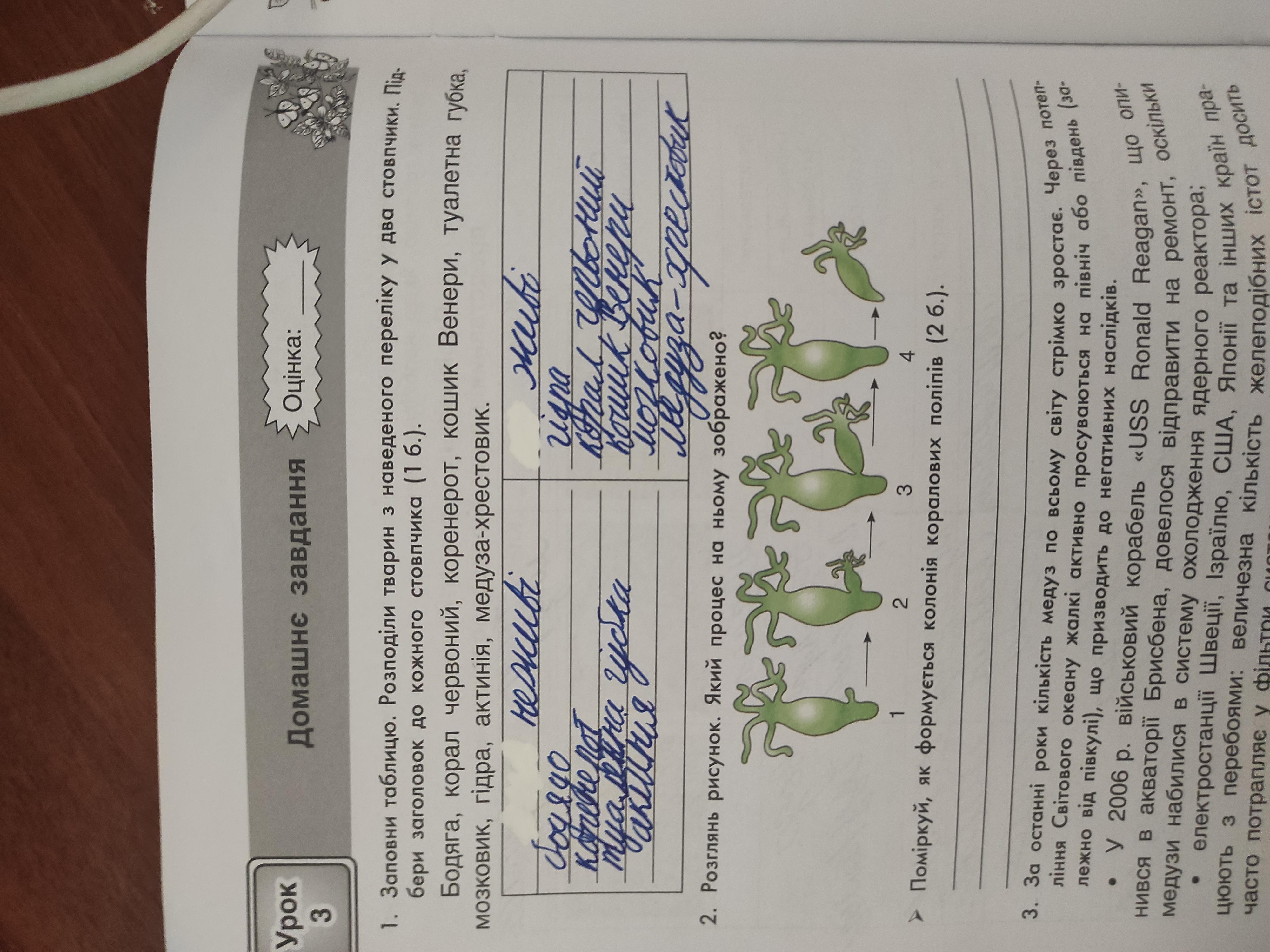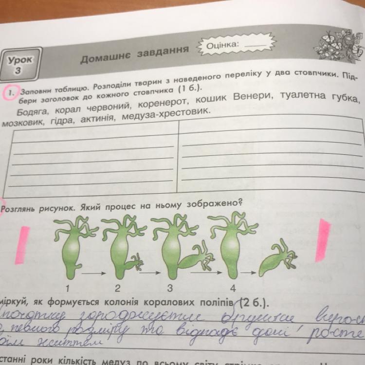 1. Заповни таблицю. Розподіли тварин з наведеного переліку у два стовпчики. Під-