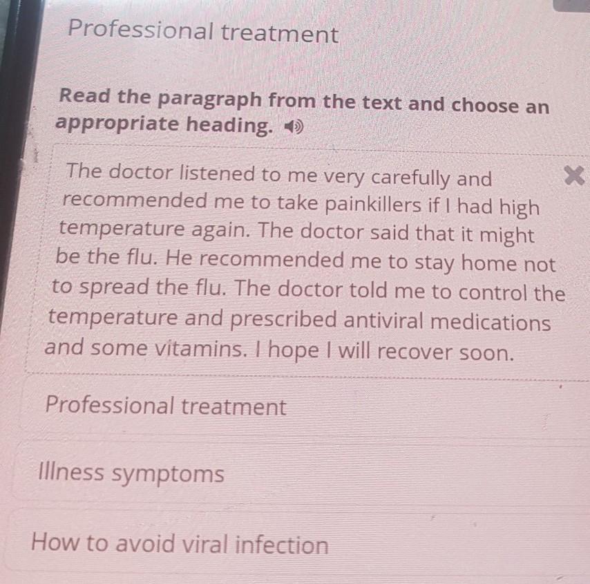 Professional treatment Read the paragraph from the text and choose an appropriate heading.