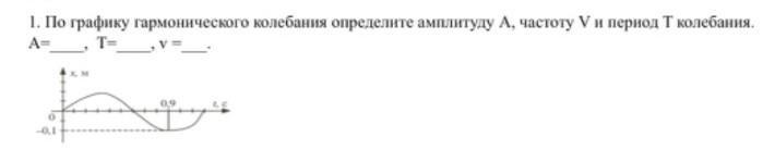 Ответ: А=0,1 м Т=0,12с ν=1/Т=8,3 Гц ω=2πν=17π рад^-1