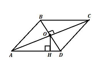 S(ромба)=540 см² , d₁=AC=4,5 дм=45 см , точка О - точка пересечения диагоналей ромба , ОН⊥AD . Найти ОН .