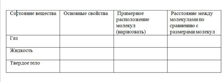 Газ: не имеет ни объема, ни формы; хаотичное расположение молекул; гораздо больше размеров молекул.
