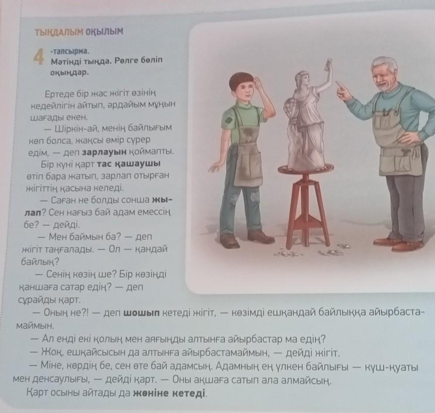 ЖАЗЫЛЫМ 10 -тапсырма. Мәтіндегі екі кейіпкердің мінездерін сипаттап жаз. Жігіт: Қария: