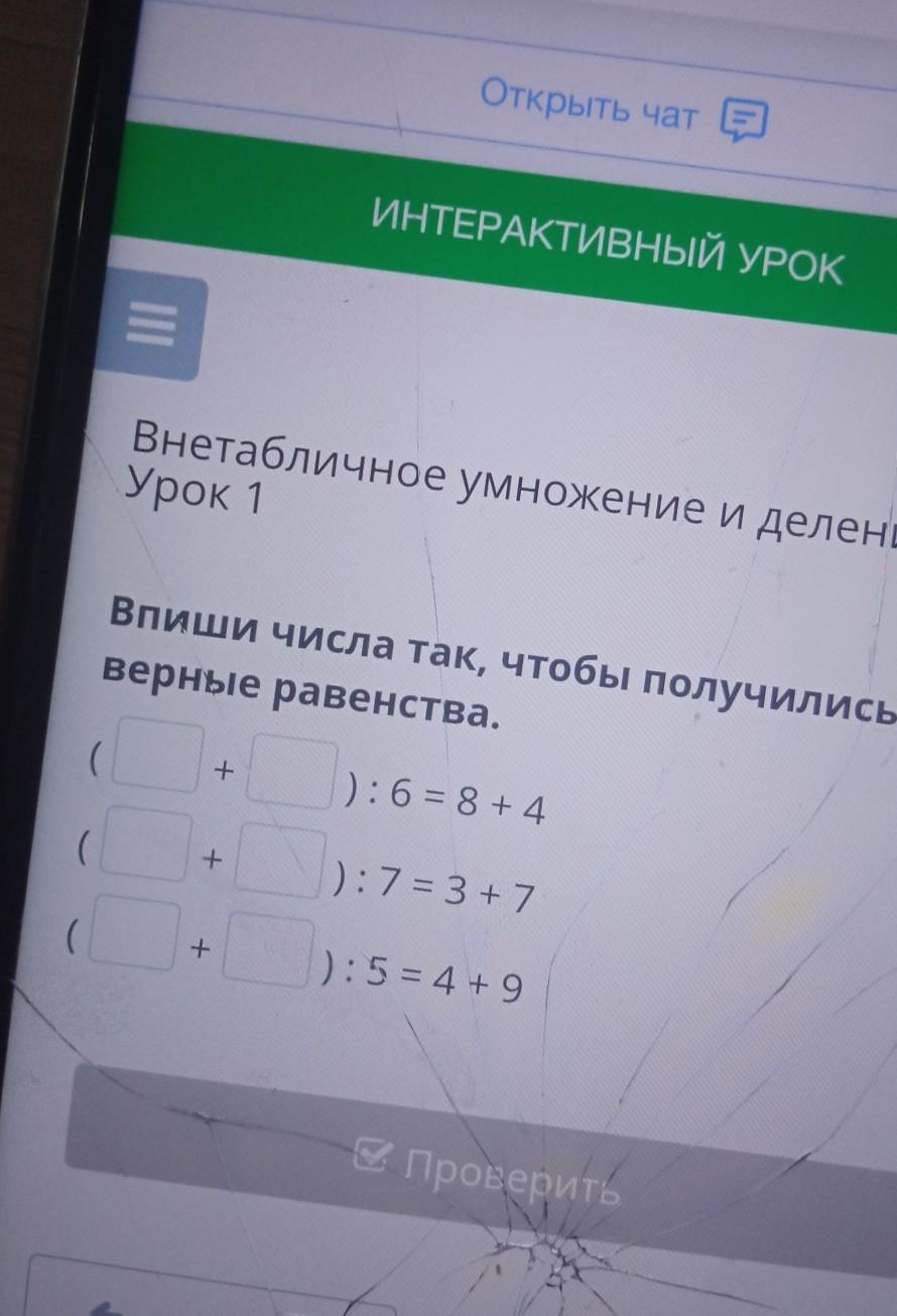 Внетабличное умножение и деление Урок 1 Впиши числа так, чтобы получились верные равенства. 1:6=8+4 ):7=3+7 5 = 49