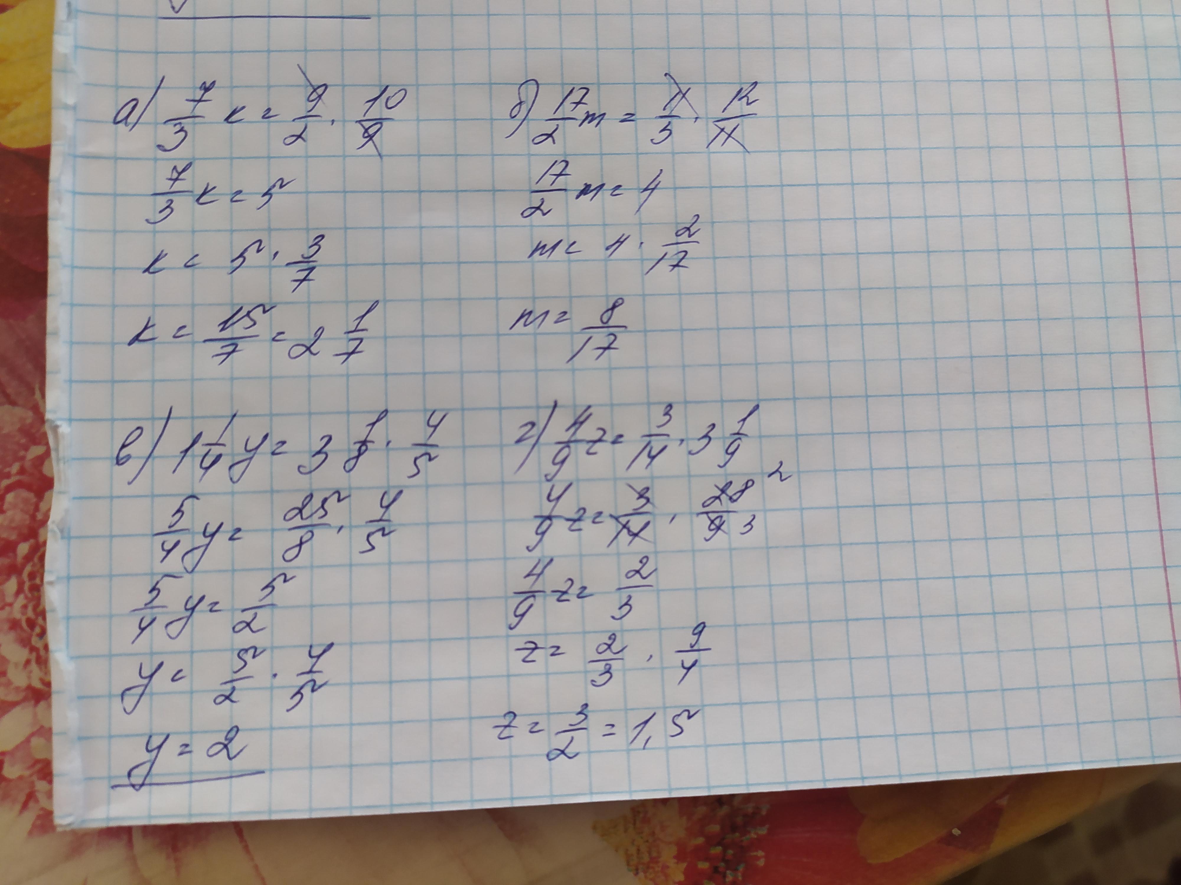 в) у : 4/5= 3 1/8 : 1 1/4