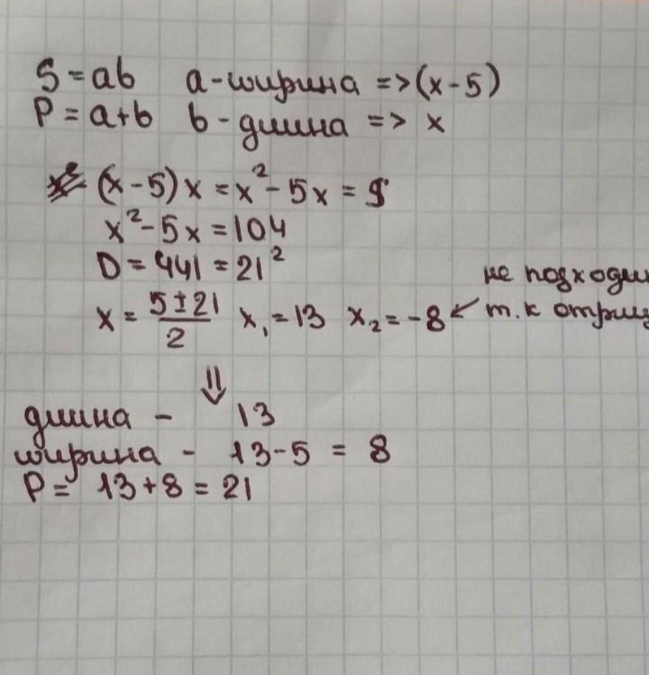 длина прямоугольника больше ширины на 5 см, а площадь его равна 104 см² найдите периметр прямоугольника решите пожалуйста!! решение квадратных уравнений используя задачи прошу помогите пожалуйста ❤️❤️❤️❤️❤️❤️❤️❤️❤️❤️❤️❤️❤️❤️❤️