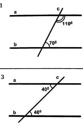 1. Сумма внутренних односторонних углов составляет 110+70=180°, значит прямые параллельны.