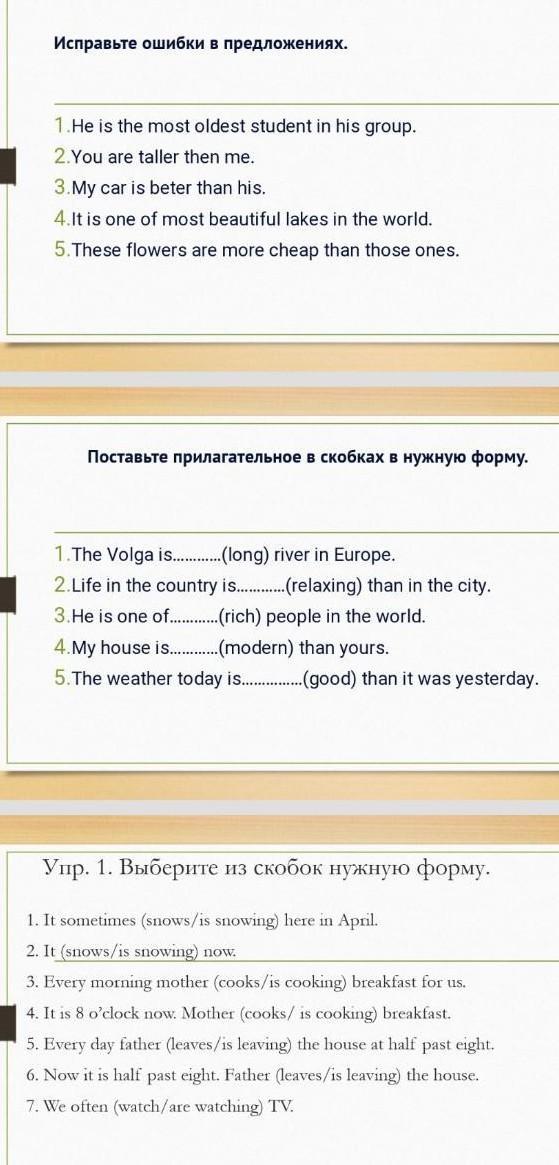 The Volga is the longest river in Europe. Life in the country is more relaxing then in the city. He is one of the richest people in the world. My house is more modern than yours. The wether today is better than it was yesterday.