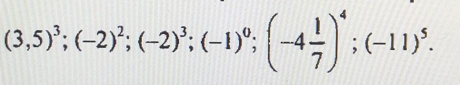 (-4 1/7 )⁴ , 3,5³ , (-2)² , (-1)⁰ , (-2)³ , (-11)⁵