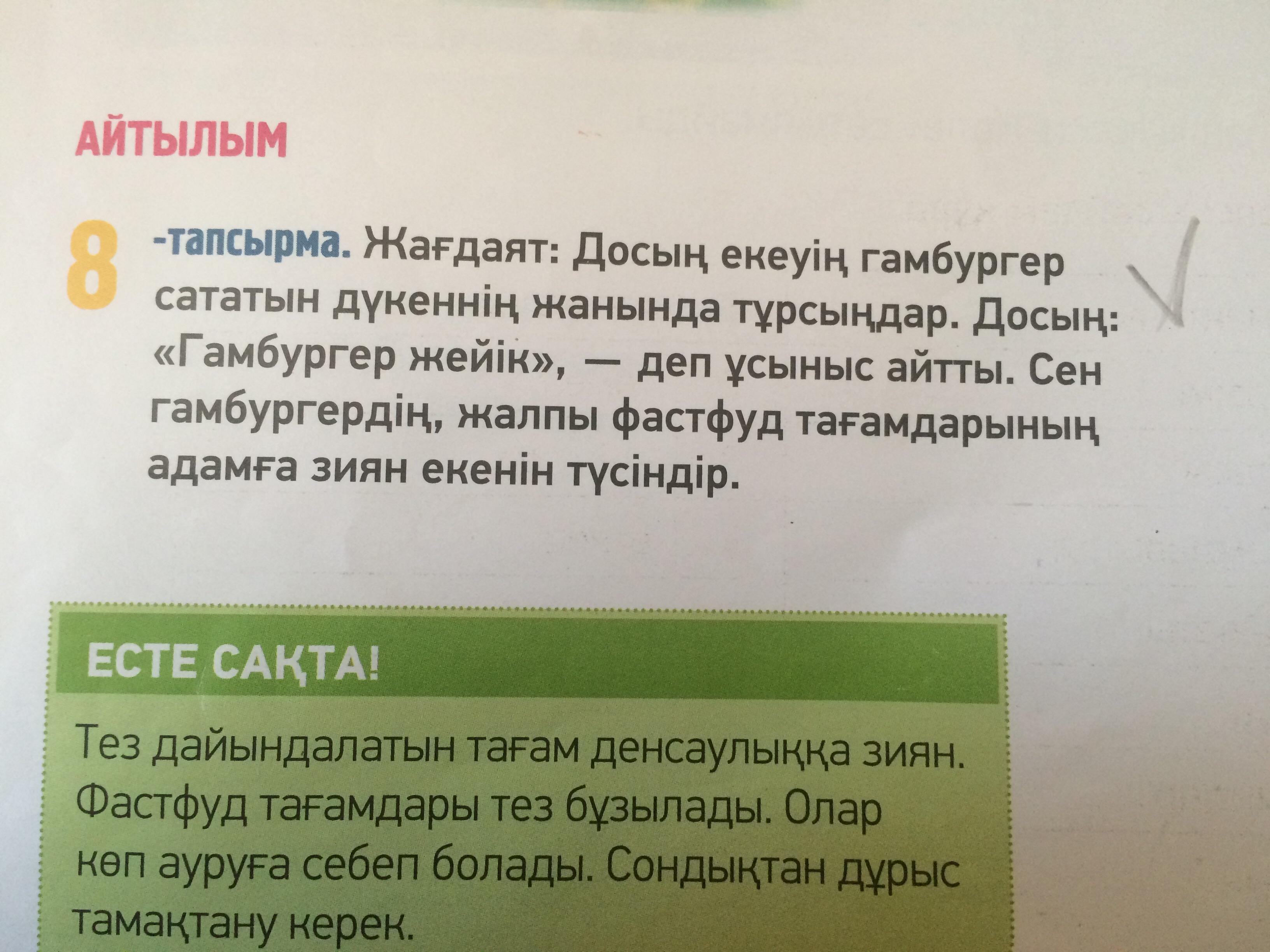 фастфут ол зиян, оны жемимім өйткені ол адам ағзасына зиян болады. Оданда балмұздақ жейік