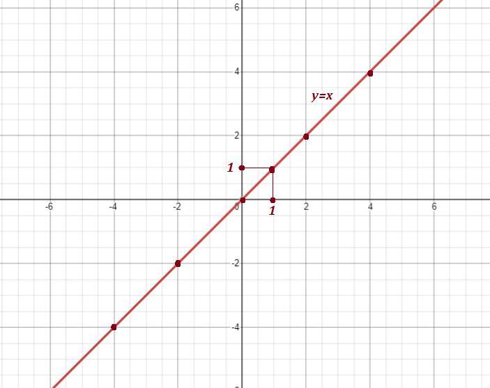 Прямая у=х - это биссектриса 1 и 3 координатных углов . Она походит через начало координат, точку (0,0) , и через точку (1,1) . Для построения прямой достаточно знать координаты двух точек .