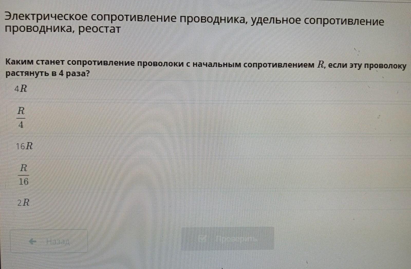 Каким станет сопротивление проводки с начальным сопротивлением R, если эту проводку растянуть в 4 раза?