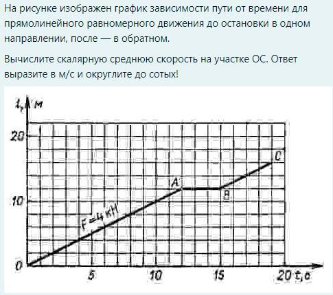 Вычислите скалярную среднюю скорость на участе 0С. Ответ выразите в м/c и окр. до сотых