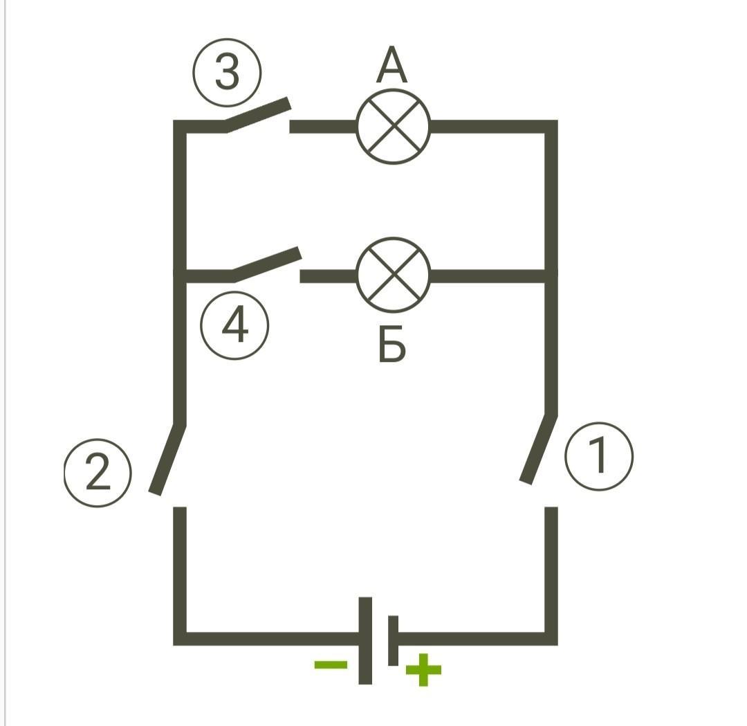 При одновременном замыкании ключа 1 и ключа 4 лампочка А...