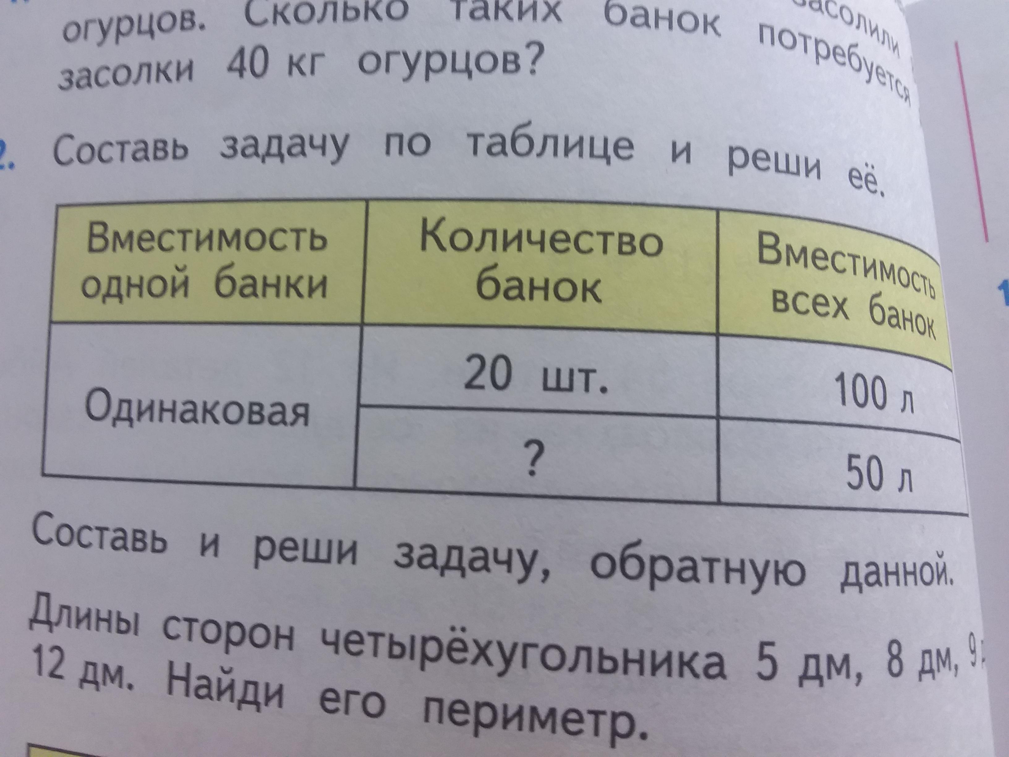 1)100:50=2 (раза) вместимость 20 банок больше, чем вместимость неизвестного количества банок.
