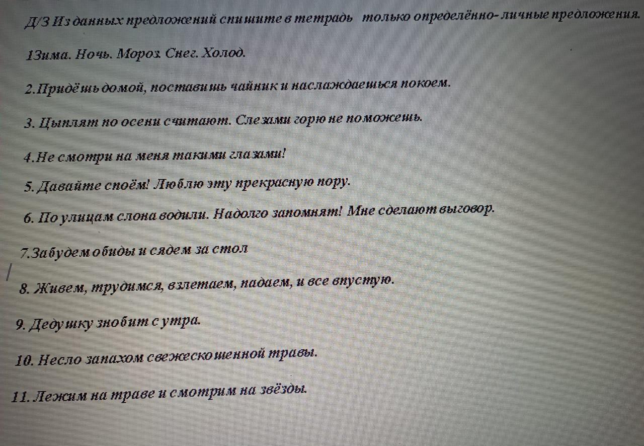 д/з из данных предложений спишите в тетрадь только определённо-личные предложения