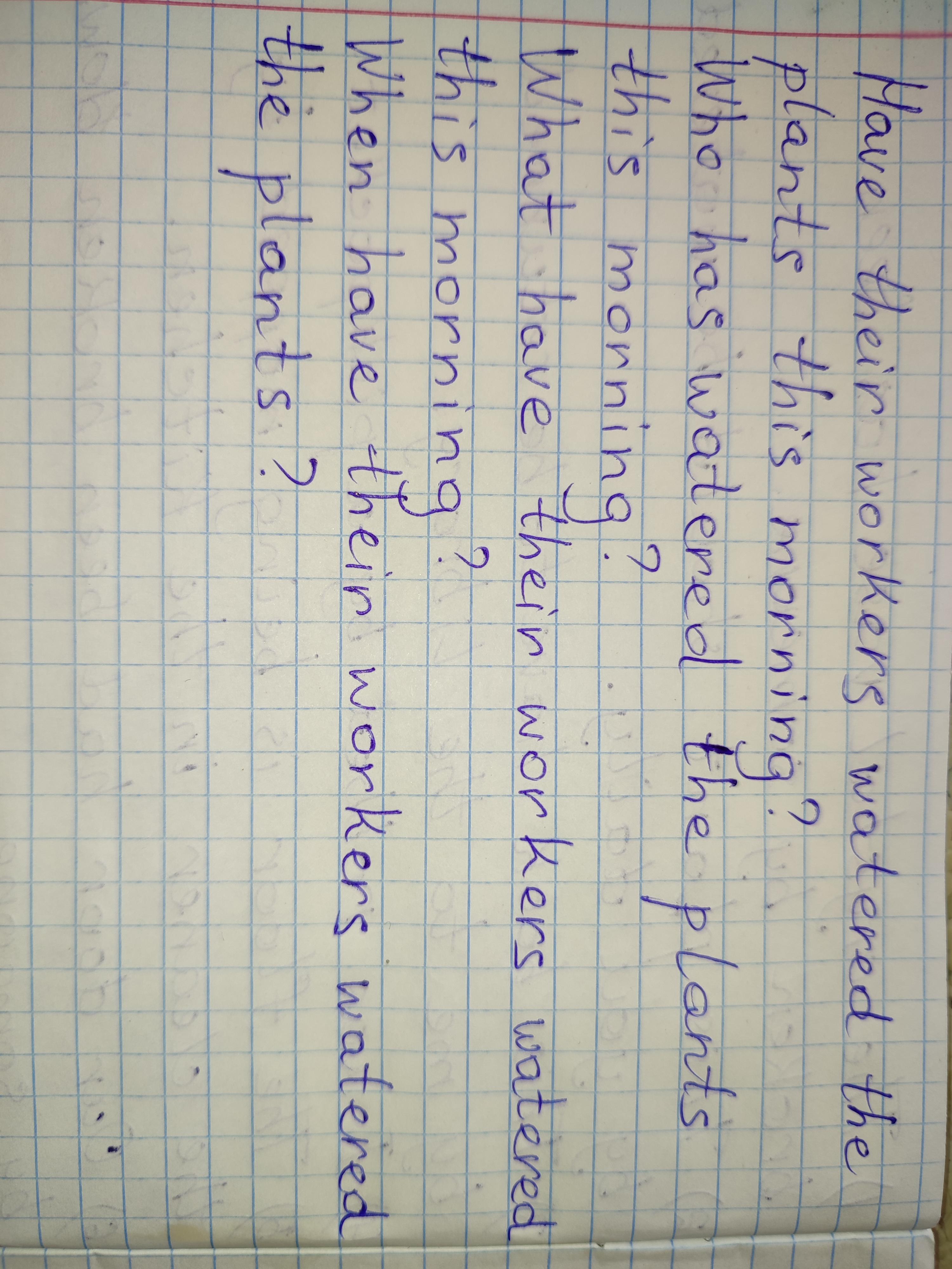 5. Write all the questions to the sentence. ( 15 p.) Their workers have watered the plants this morning.