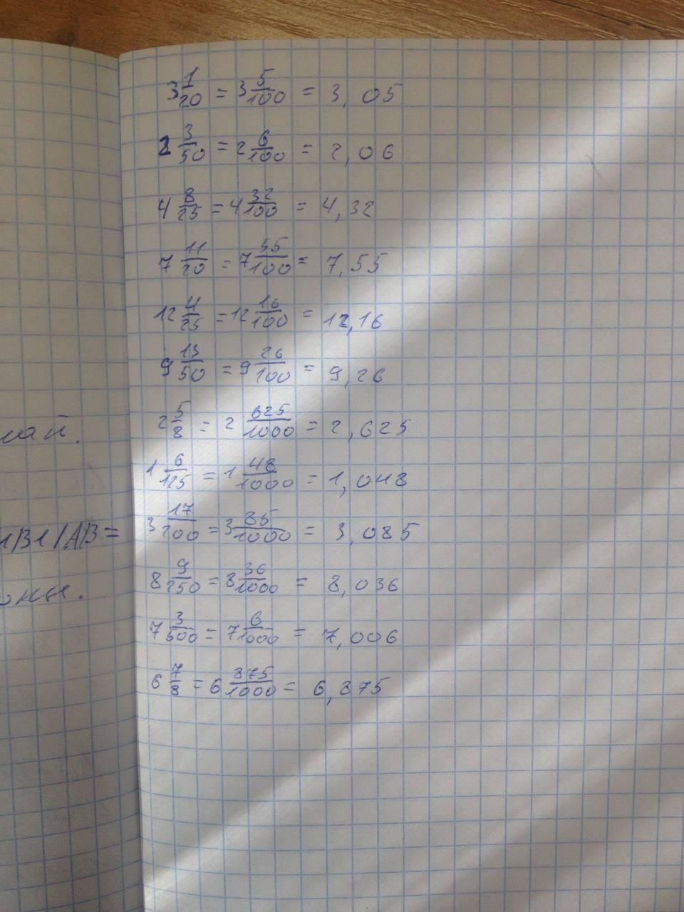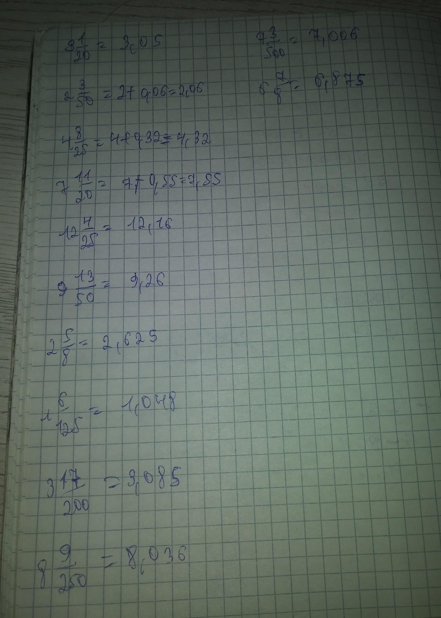 запишите в виде десятичных дробей смешанные числа 3 1/20 2 3/50 4 8/25