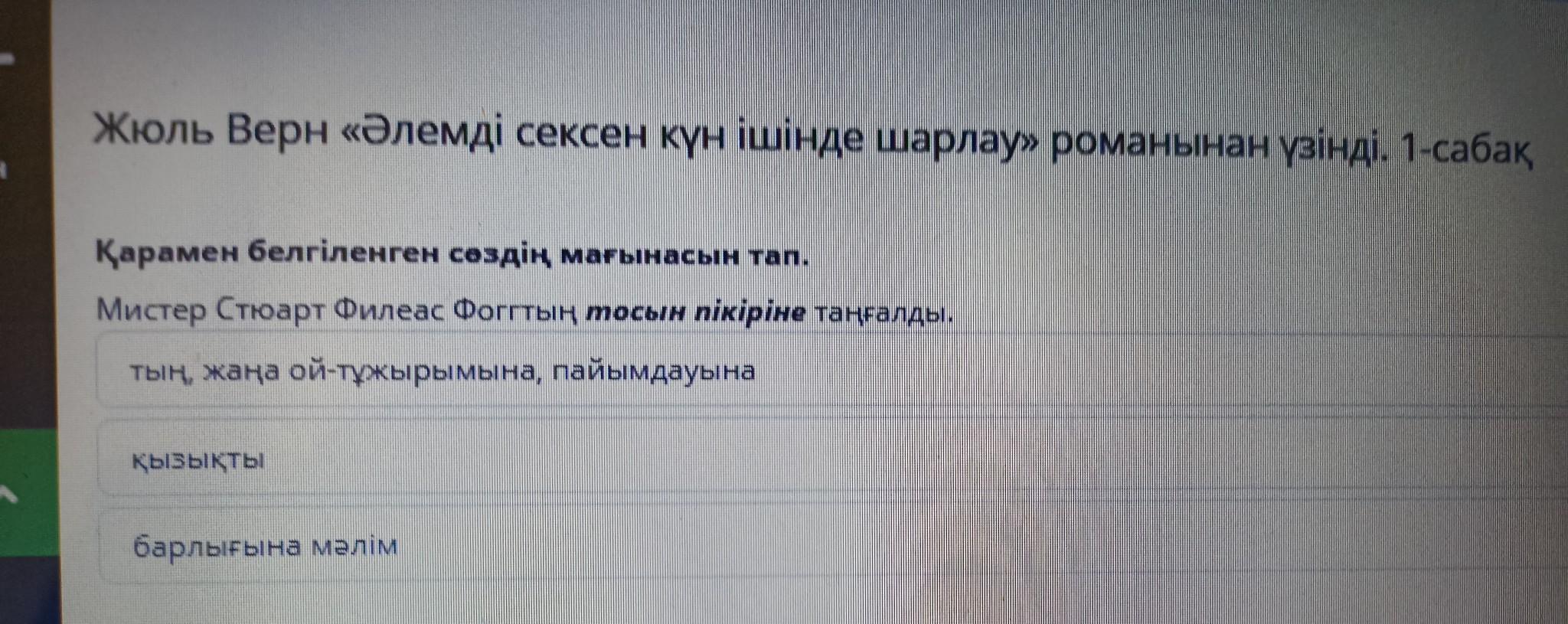 Жюль Верн «Әлемді сексен күн ішінде шарлау» ром Қарамен белгіленген сөздің мағынасын тап. Мистер Стюарт Филеас Фоггтың тосын пікіріне таңғалды. тың, жаңа
