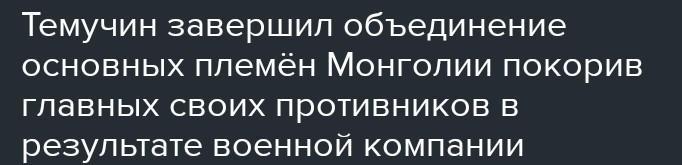 9. Темучин, разгромив кереитов, найманов и меркитов, завершил объединение Монголии в: