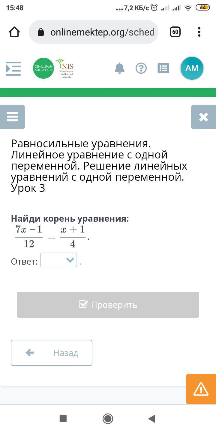 Равносильные уравнения. Линейное уравнение с одной переменной. Решение линейных уравнений с одной переменной. Урок 3