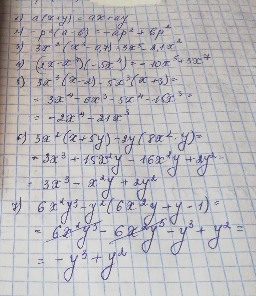 7) 6x^2y^3-y^2(6x^2y+y-1)